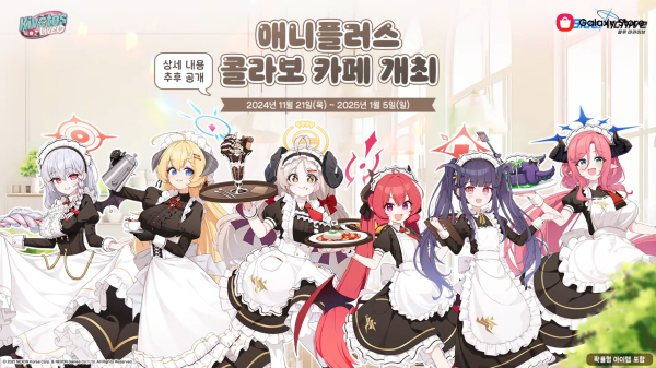 애니플러스와 콜라보를 통해 카페도 11월 21일에 운영을 시작한다. 이를 위해 메이드복을 입은 게임 캐릭터가 총출동하며, 이를 기반으로 한 다양한 굿즈도 판매된다. 또한 오는 12월 개최되는 AGF에 콜라보 카페 형태로 참가해 신규 굿즈를 판매한다.