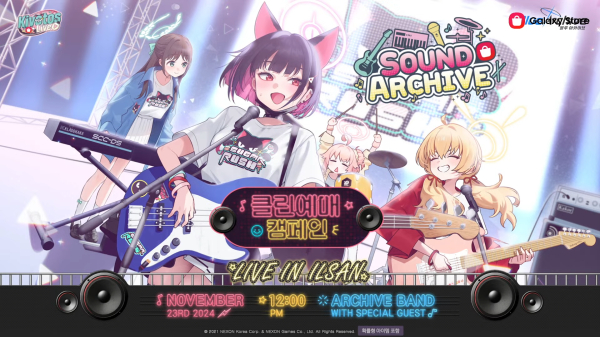 아카이브 밴드가 참여하는 콘서트인 ‘사운드 아카이브 페스티벌이 오는 11월 23일 개최된다. 일렉트로 락, 재즈, 정통 락 등으로 구성되어 있으며, 스페셜 게스트로 조매력, 이진아, 윤하 등이 참여해 라이브 무대도 선보인다. 단 레벨 70 이상의 유저만 예매할 수 있다.