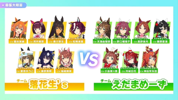 '우마무스메' 작품 속의 익숙한 팡파르가 울려 퍼지는 가운데, 후지모토 유리의 깃발 흔들기와 구호로 레이스가 시작됐다. 첫 번째 킥보드 존에서는 에다마메즈의 카미타니 사야카가 스타트 대시에 성공했다. 이어진 큰 당근 껍질을 벗기는 존도 순조롭게 돌파해, 에다마메즈가 선두를 차지하며 레이스가 진행됐다.