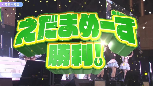 그러나 나츠요시 유코가 먹던 빵을 중간에 떨어뜨려 큰 시간 손실이 발생했다. 그 사이 에다마메즈 5번째 주자인 츠키시로 히카가 먼저 골인해 1분 45초라는 좋은 기록으로 우승을 차지했다.