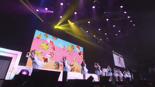 특별 영상이 끝나고, 드디어 마쿠하리 공연의 마지막을 장식하는 라이브 파트로 돌입했다. 모든 출연자가 정해진 포즈와 함께 무대에 모여 첫 번째 곡인 'U.M.A. NEW WORLD!'를 15명 전원이 한 줄로 서서 열창했다. 오프닝 곡에 걸맞은 흥겨운 분위기로 회장의 텐션을 단숨에 최고조로 끌어올렸다.