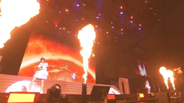 카미타니 사야는 간주에서도 기합이 들어간 대사를 선보이며, 타오르는 불길에 지지 않는 뜨거운 무대를 펼쳤다. 버블검 펠로가 천황상・가을을 수상했을 때의 위닝 라이브를 완벽하게 재현하는 듯한 무대로, 공연장에 있던 트레이너들도 열광했다.
