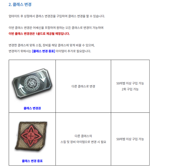 넷마블은 '어쌔신' 도입과 함께 대규모 업데이트를 추가해 유저들의 편의성을 높였다. 특히 클래스 변경 시스템은 유저 편의성을 위해서 2주 동안 진행된다. 클래스 변경 시스템을 도입하여 50레벨 이상 유저들은 장비와 스킬까지 변경할 수 있으며, 클래스 변경 증표를 통해 신규 클래스로 전환할 수 있도록 만들었다. 또한 대규모 길드전 콘텐츠인 연합 시스템 추가, 헤븐스톤 시스템 개편 등을 진행해 콘텐츠를 확장했다.