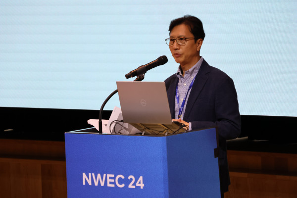 (참고 사진) NWEC 24에서 인사말을 하는 김효 네이버클라우드 이사, 연사로 참여한 이규민 연세대학교 교수