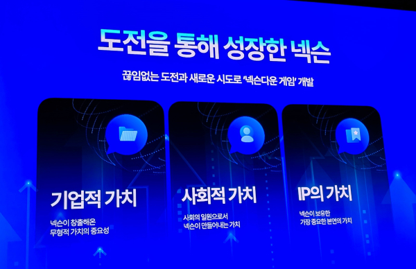 넥슨이 기업과 사회, IP 등 3가지의 가치를 강화하는 경영을 통해 영향력을 확대한다는 비전을 제시했다.