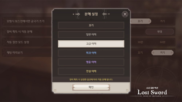 가방 공간도 확장한다. 장비가 중첩식이 아니다 보니 넘쳐나는 드랍량으로 빠르게 가방이 차는 부분에 대한 불편함이 CBT에서 지적됐다. 현실적인 DB의 한계로 가방 용량을 무한으로 할 수 없는 만큼, 처음부터 확장된 가방을 제공할 예정이다. 또 설정에 있는 자동 분해 기능에 대한 설명이 부족했던 만큼, 자동 분해를 설정하기 쉽도록 유도할 계획이다.