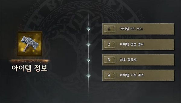 또한, 모든 재화는 블록체인의 투명성과 관련된 기능인 NFI(Non-Fungible Item)가 도입됐다. 대체 불가능한 아이템이라는 의미로 아이템에 고유 번호를 부여한다. 이를 통해 역대 소유자와 생성 일자, 최초 획득자 등 아이템이 생성된 후부터 현재까지의 정보를 알 수 있다. 누구나 NFI를 확인할 수 있기에 부정적으로 생성된 아이템이란 있을 수 없다.