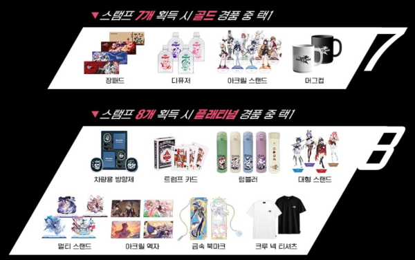부스에서는 8종의 스탬프 미션을 진행한다. 출품작인 ‘드래곤소드’의 게임 체험과 설문조사 참여, 캐릭터 인기 투표 참여, SNS 팔로우 및 인증, 경품을 획득할 수 있다. 스탬프가 5개일 때부터 경품을 선택해 받을 수 있으며, 8개일 때 가장 좋은 경품을 받을 수 있다.