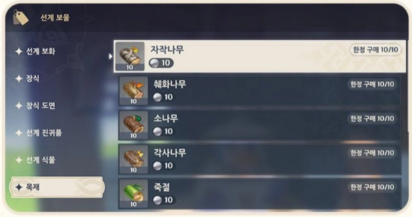 속세의 주전자 상점 편의성도 높아진다. 전에 획득한 적이 있는 목재 구매가 가능해지는 것이다. 그리고 목재를 얻는데 도움을 주는 간편 아이템인 ‘나무왕의 가호’의 재사용 대기 시간이 기존의 15초에서 5초로 줄어든다.