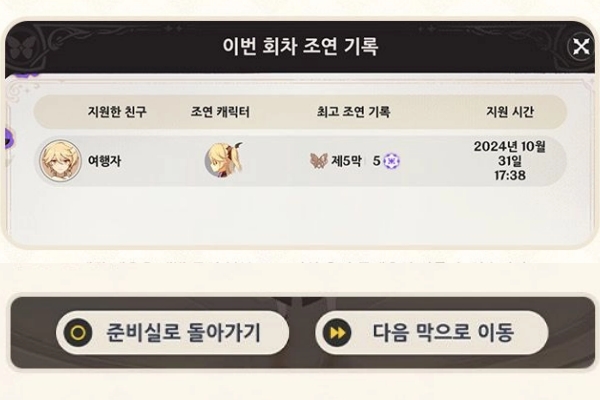 그리고 공연 준비 화면에 캐릭터 및 보스 태그가 추가된다. 그래서 캐릭터를 원소, 전/후방, 공격/지원/생존 등으로 세분화해 볼 수 있게 된다. 또 카테고리별 캐릭터의 숫자도 표시된다. 더불어 조연 라인업 화면에서 친구가 내 캐릭터를 빌린 내역 확인이 가능해지며, 공연 성공 수 결산 화면에서 ‘다음 막으로’ 버튼을 누르면 계속 도전할 수 있게 된다.