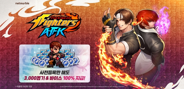 IP 게임화에 적극적인 넷마블은 '킹 오브 파이터 AFK(이하 KOF AKF)' 글로벌 사전 등록을 지난 10월 30일부터 진행 중이다. 사전 등록 보상으로 3,000 뽑기와 바이스를 100% 지급한다. 지난 10월, '킹 오브 파이터 올스타' 서비스 종료로 한 차례 고배를 마신 넷마블네오의 야심작이다.