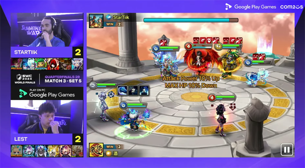 컴투스의 주관으로 '서머너즈 워: 천공의 아레나 월드 아레나 챔피언십 2024(SWC 2024)' 월드 파이널 경기가 9일 오후 일본 도쿄에서 열렸다. 8강 2라운드에서 우승후보 LEST와 신성 STARTIIK가 맞대결을 펼쳤다.