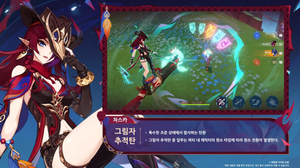 차스카는 다양한 원소 탄환을 발사하거나, 원소 전환을 통해 확산 반응을 발생해 피해를 준다. 또한 영혼총에 탑승해 깃룡처럼 공중을 날아오를 수 있다. ▲그림자 추적탄은 특수한 조준 상태에서 발사하는 최대 6발의 탄환으로, 일부는 파티원의 원소 타입에 따라 원소 전환이 발생한다. ▲영혼 수확탄은 원소 폭발로 발사하는 탄환으로서, 그림자 추적탄과 마찬가지로 파티원의 원소 타입에 따라 원소 전환을 일으킨다.