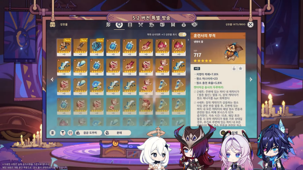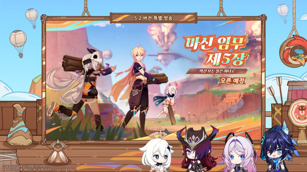 호요버스는 지난 8일, 5.2 버전 업데이트를 기념한 특별 방송을 진행했다. 5.2 버전 '영혼과 불꽃의 두루마리'는 오는 20일 업데이트될 예정이다. 원신의 마스코트 페이몬 성우 김가령과 차스카 성우 수현, 올로룬 성우 서정익, 시틀라리 성우 이은조 등 4인이 각자의 게임 캐릭터로 진행을 맡아 귀가 즐거운 방송이었다. 또한, 신규 캐릭터를 비롯해 마신 임무, 시즌 이벤트 등 다양한 콘텐츠를 선보였다.