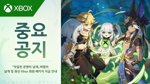 5.2 버전 업데이트와 함께 엑스박스 시리즈 X/S에서 이제 원신을 플레이할 수 있다. 엑스박스 플레이 혜택으로 바람의 날개와 엇갈린 운명의 날개를 받을 수 있다. 또한, 게임패스 얼티밋 회원은 추가 선물을 제공받으며, 엑스박스 클라우드로도 원신을 즐길 수 있다.