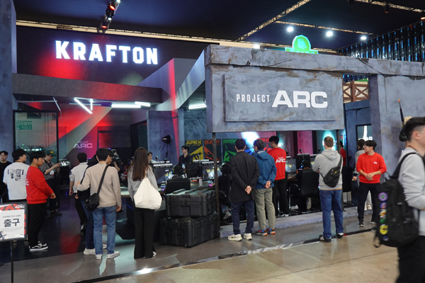 부산 벡스코 제1전시장인 BTC 1관 A05 자리에 위치한 크래프톤 부스는 정중앙에서 현장 관람객을 맞이했다. '프로젝트 아크'와 '인조이', '딩컴 투게더' 등의 현장 시연 버전을 선보여 유저들이 다양한 신작들을 자유롭게 체험할 수 있도록 구성했다.