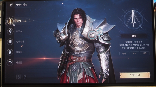 지스타에서는 스토리 시연과 탐험 시연, 두 가지를 맛볼 수 있다. 전체적인 키 조작과 ‘아키텍트’의 세계관을 살펴보는 차원에서 스토리 시연을 먼저 추천한다. 일반적인 MMORPG와 마찬가지로 캐릭터 생성을 먼저 진행하며, ▲전사 ▲마법사 ▲전투사제 ▲암살자 ▲사냥꾼 등의 5가지 클래스를 선보였다.