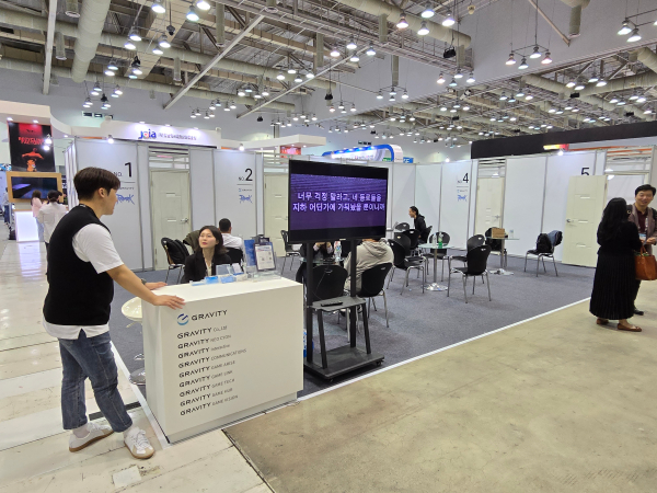 BTC관에 대형 부스를 마련한 그라비티는 BTB관에서 아주 심플한 디자인의 부스를 운영하고 있다. 본사는 물론 여러 국내외 자회사의 비즈니스를 위한 공간으로 활용하고 있다.
