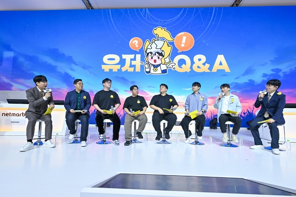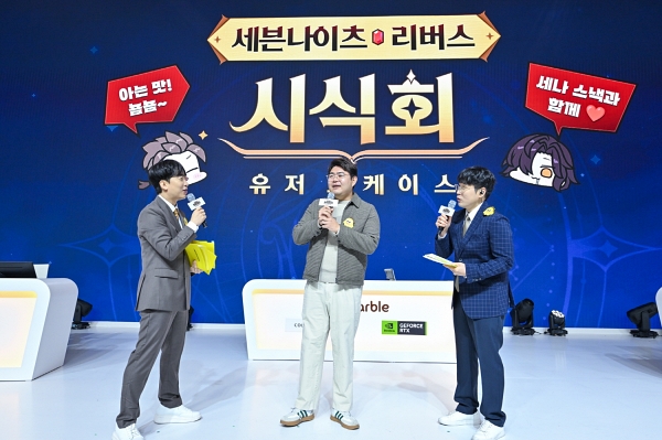 성승헌 MC와 클템이 함께 진행한 이번 유저 쇼케이스는 넷마블의 대표 IP 세븐나이츠 팬들과 함께하는 방식으로 진행됐다. 넷마블넥서스 김정민 대표는 "IP팬들의 기대에 부응할 수 있도록 실망시켜 드리지 않겠다"며, 현장에 모인 팬들을 향해 큰절까지 했다.