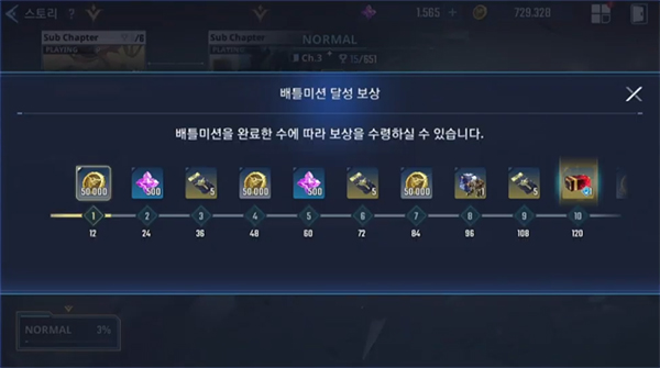 스토리 챕터 클리어 보상이 상향되어, 모집 티켓이 2개에서 5개로 늘어난다. 배틀미션 구간 보상도 추가되고, 미션 달성에 따라 누적 구간 보상이 새롭게 추가된다. 성장에 필요한 다양한 재화를 보상으로 얻을 수 있는데, 그중 전설 룬도 리버스 부분 보상 항목에 준비될 예정이다.