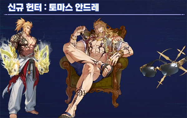 새로운 헌터 토마스 안드레는 원작의 느낌을 최대한 반영해 멋진 외형으로 완성됐다. 명속성 헌터로서, 변신한 후 폭딜을 넣을 수 있다. 궁 스킬을 사용하면 인간형으로 다시 돌아와 전투를 이어갈 수 있다. 파멸의 권좌와 길드 보스전에 특화된 성능으로 디자인됐다.