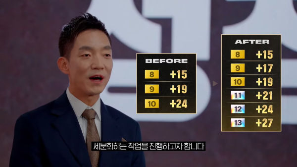 그리고 새로운 성장 기회를 제공함과 동시에 기존 9, 10강 선수들의 희소가치를 유지하는 것이 이번 성장 업데이트의 핵심 방향이다. 이를 위해 보다 안정감 있는 상위 강화 콘텐츠를 이용할 수 있도록 ‘BP 강화 보호 시스템’을 도입할 예정이다. 그래서 9, 10강 선수들의 희소성이 유지될 수 있도록 8강 이상부터 ‘강화 단계 조정’을 진행할 예정이다.