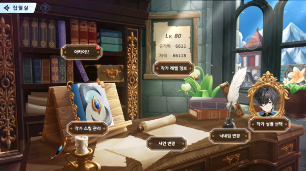 작가 성장을 통해 획득하는 재화로 직업 및 속성별 캐릭터들을 동시에 성장할 수 있게 하는 '아카이브' 콘텐츠도 제공한다. 특정 카테고리의 아카이브 버프 개수가 일정 수 이상 활성화될 시 추가 버프 활성화가 가능해 더욱 강한 성장을 지원한다. 아군 덱의 사용처에 맞게 특정 스탯을 강화하거나 초기화하는 등의 전략적 덱 관리가 가능하다. 작가와 관련된 모든 내용은 '집필실'이라는 콘텐츠를 통해 관리할 수 있다.