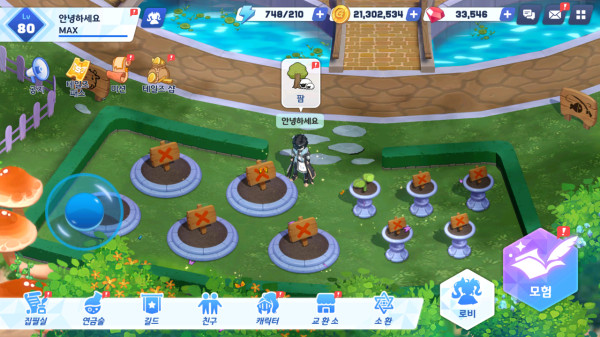 원작 ‘테일즈런너’의 광장을 재현한 하늘섬은 직접 캐릭터를 움직이면서 다른 작가들과 상호작용을 하거나 '팜', '낚시', '오락실' 등 다양한 생활 콘텐츠를 즐길 수 있는 공간이다.