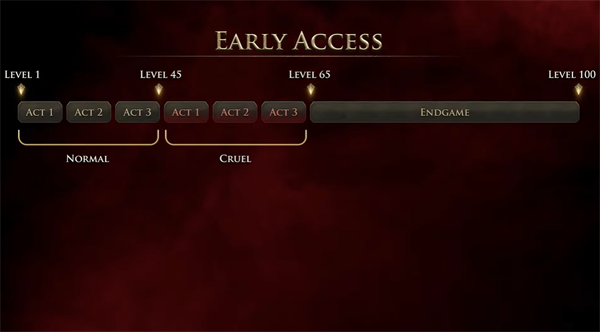 얼리액세스 오픈 콘텐츠에 대해서도 공개됐다. '패스 오브 엑자일 2'은 총 액트6까지의 콘텐츠가 존재하고, 이후 엔드게임 단계로 나아가지만, 얼리액세스에서는 액트3까지의 콘텐츠만 제공될 계획이다. 유저는 노멀 액트3까지 이어간 이후, 다시 높은 난이도의 액트3을 반복한 다음 엔드게임 콘텐츠로 넘어갈 수 있다.