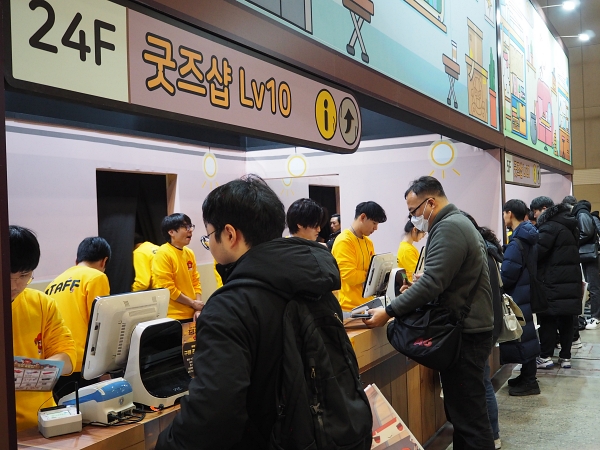 굿즈샵에서는 주문서를 통해 원하는 상품을 자유롭게 선택해 구매할 수 있다. 쿠션, 장패드, 족자봉, 블라인드 박스, 티셔츠, 포토카드 등 구매욕을 자극하는 상품들이 가득하다. 모험가들은 긴 대기열에도 질서를 지키며, 마음에 드는 굿즈를 신중히 선택했다.