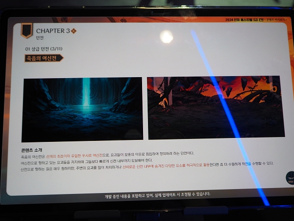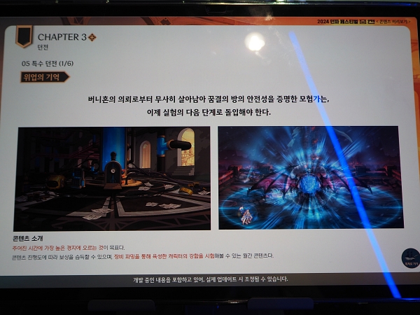22일, 1부 쇼케이스를 함께 하지 못한 모험가들을 위한 중천 정보 열람실도 오픈했다. 많은 숫자의 태블릿을 설치해 중천 및 겨울 업데이트의 다양한 정보를 목차에 따라 직접 확인할 수 있는 공간이다. 22일 발표된 내용보다 더 많은 내용을 담고 있어, 다가오는 중천 업데이트에 대비해 모험가들은 세심하게 내용을 확인했다.