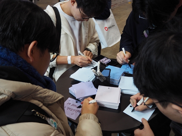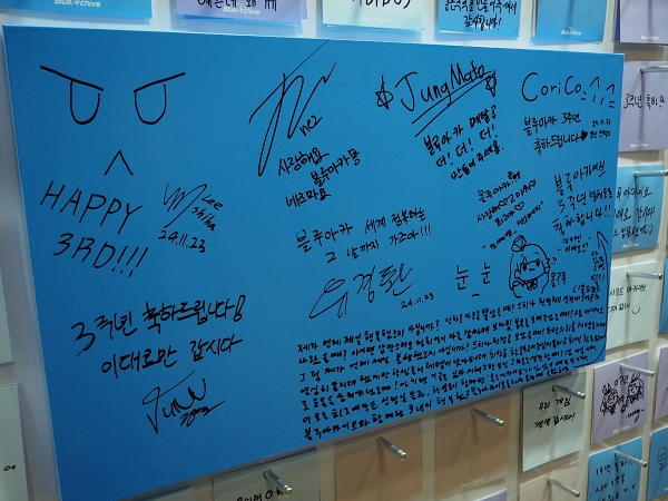 축하 메시지를 붙일 수 있는 3주년 기념 축하 메시지 월에서는 이른 시간에도 불구하고, 선생님들의 다양한 응원 메시지가 가득 찼다. 많은 선생님들이 블루 아카이브의 3주년을 축하하며, 여전히 함께 하길 바라는 마음을 메시지 월에 남겼다.