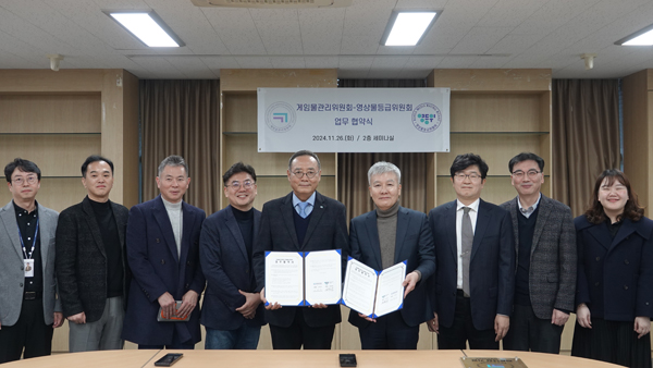 게임물관리위원회(이하 ‘게임위’, 위원장 서태건)는 영상물등급위원회(이하 ‘영등위’, 위원장 김병재)와 26일(수) 오전 11시 게임위 2층 세미나실에서 등급분류제도 발전 협의체 운영과 등급분류 기준 연구 등을 위한 업무협약을 체결했다.