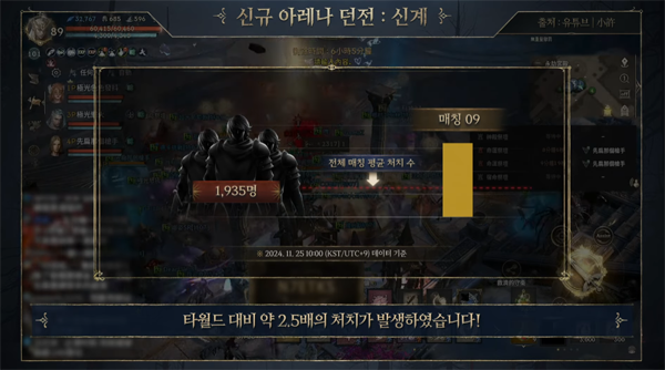그 결과 매칭09에서는 총 1,935명이 참전해 타 월드 대비 2.5배의 킬이 나오며 난타전을 펼쳤다. 아쉽게도 첫 주 경쟁 구도에서 보스 몬스터 메타트론 공략에 성공한 매칭은 나오지 않았다. 주말 동안 다시 이어질 경쟁에서도 또다른 유저간 경쟁이 펼쳐지며 눈길을 모을 것으로 예상된다.