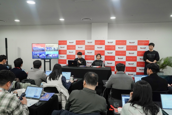 행사 시작과 함께 스마일게이트 퓨처랩 재단 백민정 센터장과 황주훈 재단 팀장의 미디어 브리핑이 진행됐다. 백민정 센터장은 “3회 째를 맞아 공식 브리핑을 하게 됐다. 2회 째부터 점점 나아졌다는 확신이 들었다”며, “준비를 하다 보니까 관심과 자신이 생겨서 소개할 수 있는 자리를 마련했다”고 전했다.