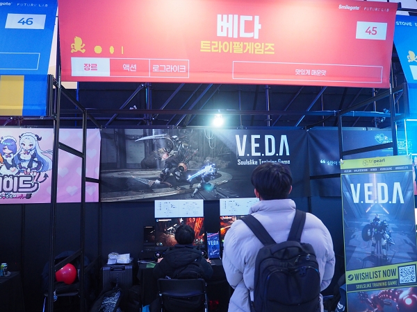 ‘V.E.D.A’는 글로벌에서 일찌감치 인정받은 소울라이크 기대작으로, 최근 스토브인디와 퍼블리싱 계약을 체결했다. 그 밖에 덱빌딩 로그라이크 전략 게임 ‘아키타입 블루’, 메이드 카페 운영 타이쿤 ‘폭풍의 메이드’, 육성 연애 시뮬레이션 ‘서큐 하트’ 등을 선보였다.