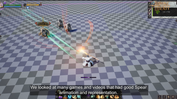 창은 어떻게 보면 단순한 무기지만, 창의 타격감을 살리기 위해 개발팀은 부단히 노력했다. 창의 기본 공격 패턴인 찌르기는 타격감을 느끼기 어려운 동작이다. 하지만, 찌르는 순간에 맞춰 이전 동작을 최대한 다른 포즈로 구성해 대비 효과를 강조했다. 공격 이후에는 창을 돌리거나 멋진 피니시 포즈 등 마무리 동작으로 연출의 완성도를 높였다.