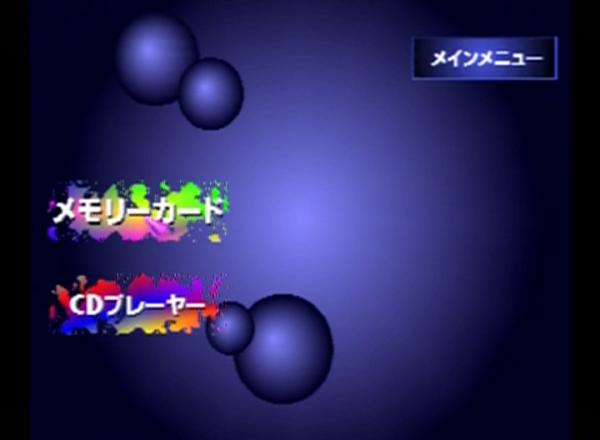 초창기 PS의 메인 메뉴는 그래픽이나 사운드 등에 대한 설정 항목이 준비되어 있지 않아, 전체적인 인상은 '게임기에 CD 플레이어 기능이 추가되었다'라는 느낌이다.