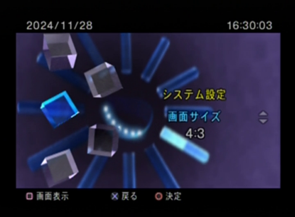 또한, 시스템 설정에서는 화면 크기 등을 변경할 수 있다. 초창기 PS와 비교하면 컴퓨터와 비슷해진 느낌이 있다.