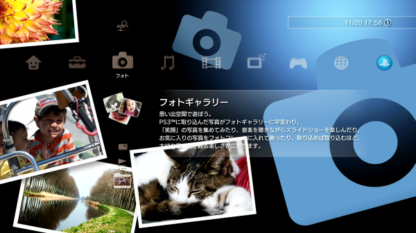 의외로 내장 HDD나 USB 메모리 등에 기록한 사진 데이터를 표시하는 '포토 갤러리'가 충실하다. 특히 슬라이드 쇼 기능은 지정한 이미지를 순차적으로 표시할 뿐만 아니라, 각 이미지를 볼 때 바람에 흩날리는 듯한 정교한 연출을 즐길 수 있다.