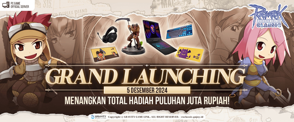 글로벌 게임 기업 그라비티의 인도네시아 지사인 그라비티 게임 링크(Gravity Game Link, GGL)가 12월 5일 오전 10시(현지 시간 기준), PC MMORPG ‘라그나로크 클래식(Ragnarok Classic)’을 인도네시아 지역에 정식 론칭했다.