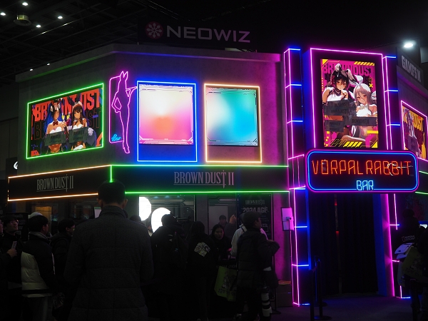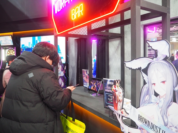 ‘브라운더스트2’ 부스는 화려한 네온사인으로 구성해 멀리서도 쉽게 알 수 있을 정도로 눈에 띄었다. 관람객은 입장과 함께 스탬프 퀘스트에 참가한다. 1.5주년 사전예약 인증, 다트 던지기 미니 게임 등 가벼운 미션을 완료하면 스탬프를 받을 수 있다.