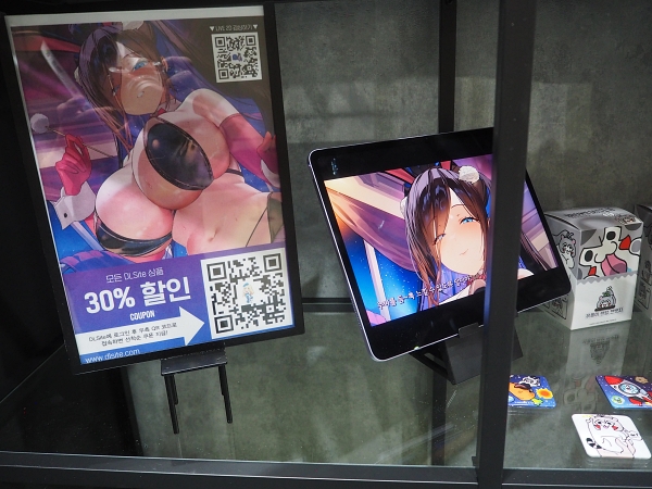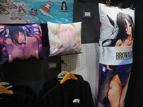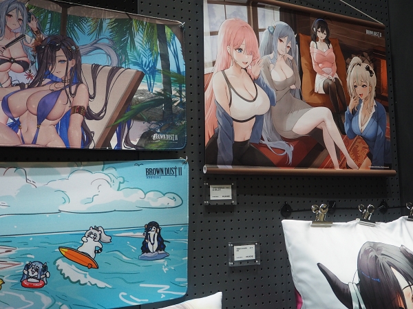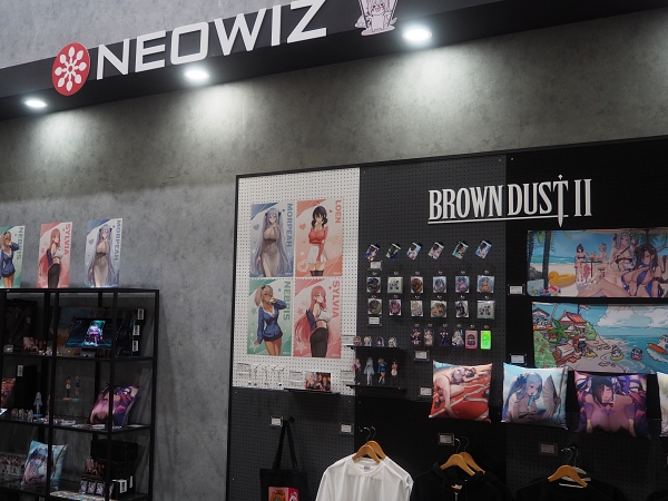 부스 반대편에는 팝업스토어를 마련했다. 쿠션, 아크릴 스탠드, 티셔츠 등 ‘브라운더스트2’의 다양한 굿즈들이 벽면을 한가득 채웠다. 제법 수위가 높지만, 뛰어난 퀄리티의 굿즈 덕분에 많은 남성 유저들의 발길이 줄을 이었다.