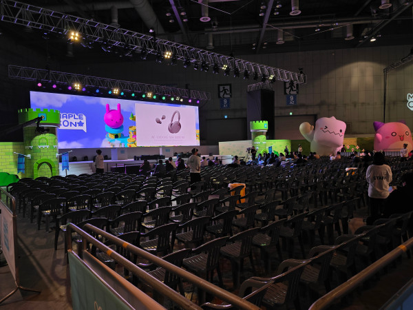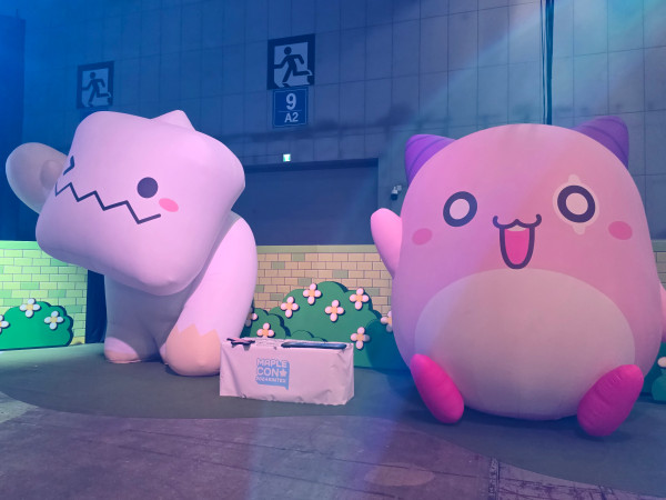 무대의 양옆에는 엄청나게 큰 '메이플스토리'의 대표 캐릭터들이 배치되어, 마음껏 사진을 찍을 수 있게 되어 있다.