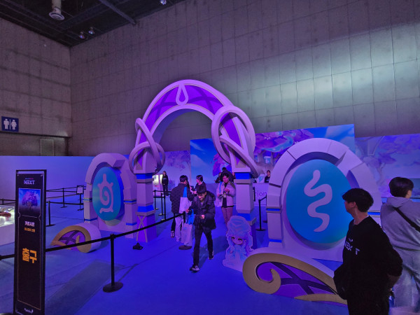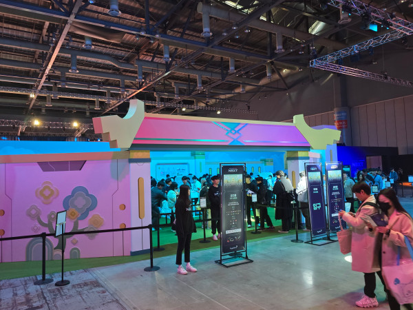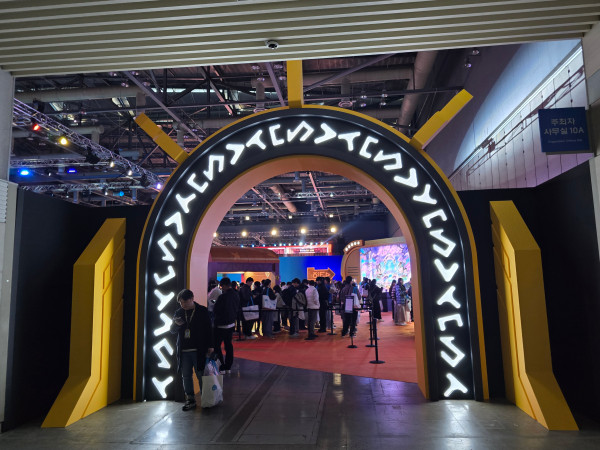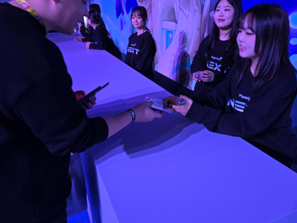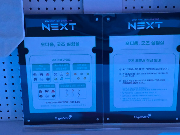 'NEXT' 쇼케이스 행사장 전경이다. 이 문을 통과하면 행사장에 입장할 수 있다. 참고로 이곳은 '메이플콘 2024' 행사장 옆에 마련됐다. 그래서 쇼케이스 참가자는 통로를 통해 바로 옆으로 이동할 수 있었다.