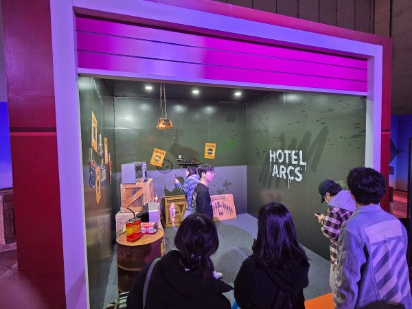 입장 후 가장 먼저 만날 수 있는 ‘호텔 아르크스’다. 자신의 게임 캐릭터와 기념사진을 촬영할 수 있는 공간을 제공한다. 프로그램에 참여한 관람객은 자동차 극장 스크린에 등장한 캐릭터와 함께 사진을 남기거나, 캠코더 포토 부스에서 캐릭터와 셀프 카메라를 촬영할 수 있었다.