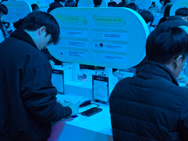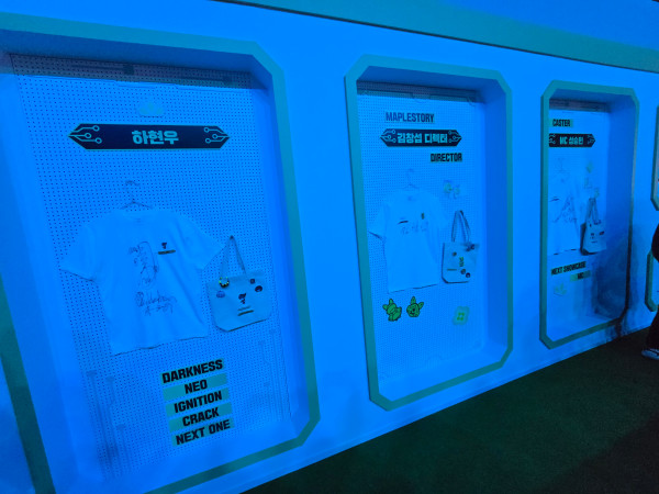 그 옆에는 ‘오디움’이 마련됐다. 이곳에서는 입장 선물 중 하나인 ‘내 메이플 캐릭터’가 인쇄된 에코백과 티셔츠를 와펜핀과 키링 등을 활용하여 DIY 커스텀으로 꾸밀 수 있는 공간을 마련한다.
