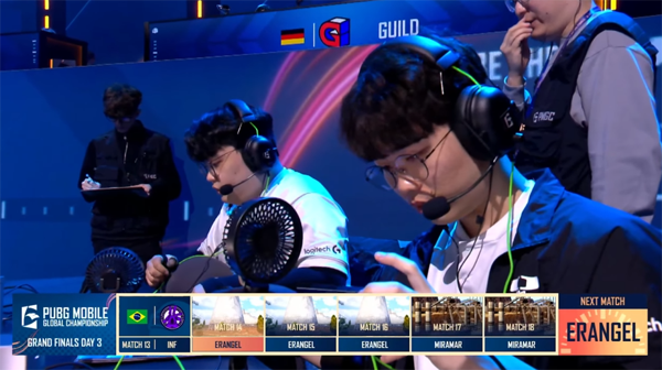 그랜드 파이널 경기는 1일차부터 어지러운 난타전이 이어졌다. 배틀그라운드 모바일 글로벌 최강자들의 경쟁답게 매치마다 쉬운 경기가 없었다. 디플러스 기아와 DRX 등 한국 팀들은 다른 팀들의 기세에 눌리며 아쉬운 결과를 가져갔다. 그나마 매치6에서 디플러스 기아가 치킨을 확보해 희망을 이어 나갔다.