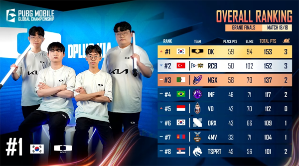 디플러스 기아(DK)가 2024 PMGC 파이널 무대에서 극적인 최종 우승을 차지했다. 파이널 마지막 매치인 매치18에서 치킨 확보에 성공해 경쟁팀인 RCB를 단 1점 차이로 따돌리는 기적을 만들어냈다.