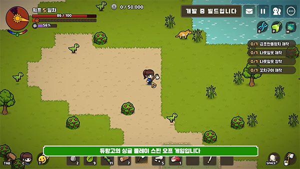 기본 플레이는 생존, 제작, 수집의 서바이벌 게임에 근접하다. 이런 행위는 반복적이지만 의미 있게 확장하고자 섬과 공룡 등 여러 가지 콘텐츠를 활용해 세계관을 넓히는 데 중점을 뒀다. 획득한 공룡을 활용할 수 있는 콘텐츠도 존재하고, 나무 열매를 채집하며, 주거 캠프를 발전시켜 나가는 등 생존 게임에 가까운 모습이다.